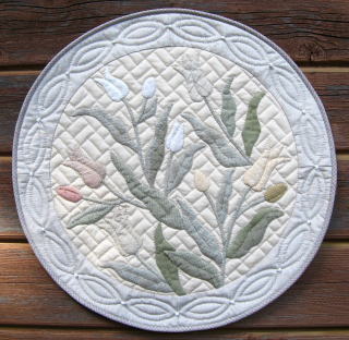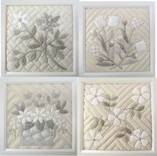 「花ごよみ」 キルトジャパン掲載(日本ヴォーグ社刊)昨年 キルト展には、お忙しい中ご来場いただきましてありがとうございました。 大きなキルト、小さなキルト、どれも一針ずつ心を込めて作りました。 デザイン、配色、ピースワーク、アップリケ、キルティング、 仕上げと一枚のキルトが出来上がるまでには、長い長い時間がかかります。 そして、作品一つに一人分の思いが込められることとなります。 出会い、別れ、楽しかったこと、悲しかったこと・・・。 最後の一針を縫い終えた時は、全てをキルトが吸い込んでくれたかのように、 とても心が穏やかになります。それは作った人へのごほうびです。 心安らぐキルトを大切な人のために・・・。 ご尽力をいただきました皆様に心からお礼を申し上げます。 キルトバーム |